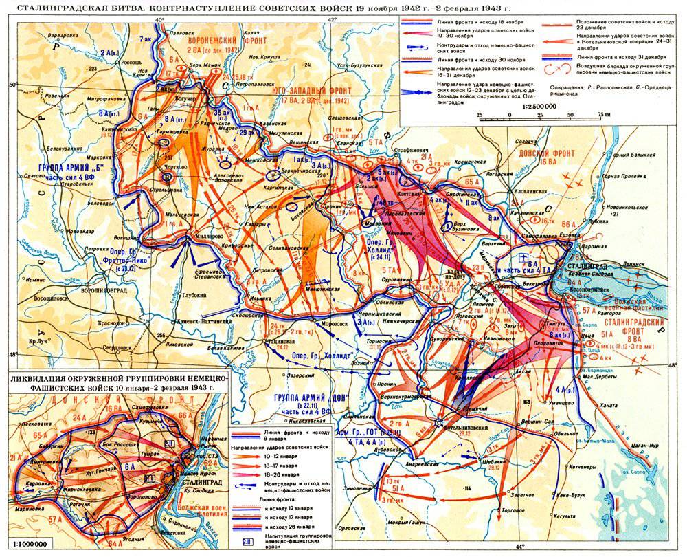 Сталинградская стратегическая наступательная операция (19 ноября 1942 г. - 2 февраля 1943 г.). Ставка Верховного Главнокомандования и Генштаб в сентябре-ноябре 1942 года разработали план стратегического контрнаступления советских войск под Сталинградом. Разработкой плана руководили Георгий Константинович Жуков и Александр Михайлович Василевский.