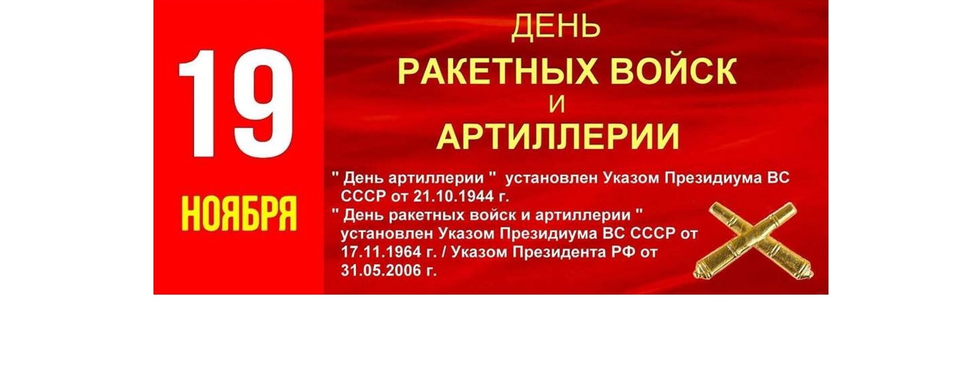 Сегодня, 19 ноября, мы отмечаем День Ракетных Войск и Артиллерии (РВиА). Он был учрежден указом Президиума Верховного Совета СССР от 21 октября 1944 года в честь заслуг артиллерии в ходе Великой Отечественной войны. Дата 19 ноября выбрана в честь начала контрнаступления Красной армии под Сталинградом в 1942 году, ставшего переломным моментом войны.