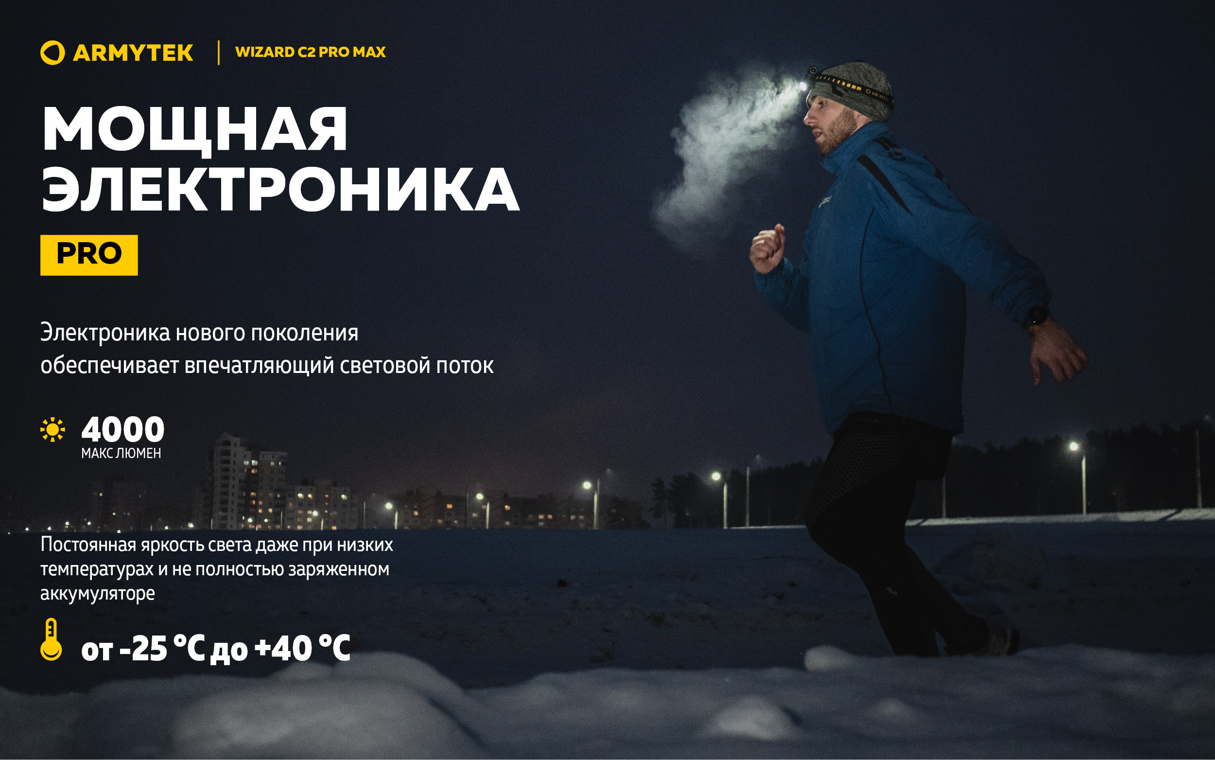 - Pro Max Электроника нового поколения обеспечивает впечатляющий световой поток в 4000 люмен. Постоянная яркость света даже при низких температурах и не полностью заряженном аккумуляторе.