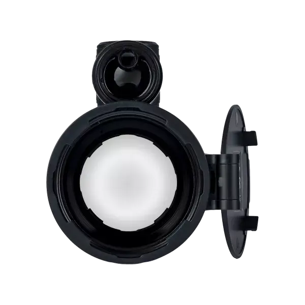 Окулярная часть прицела продумана для комфорта и безопасности стрелка. Выходной зрачок имеет удаление в 48мм, что минимизирует риск травм при отдаче. Просветленные линзы окуляра характеризуются минимальными аберрациями, гарантируя комфорт при длительном наблюдении. Для адаптации тепловизора под зрение стрелка предусмотрена настройка диоптрий в диапазоне -5/+5D.
