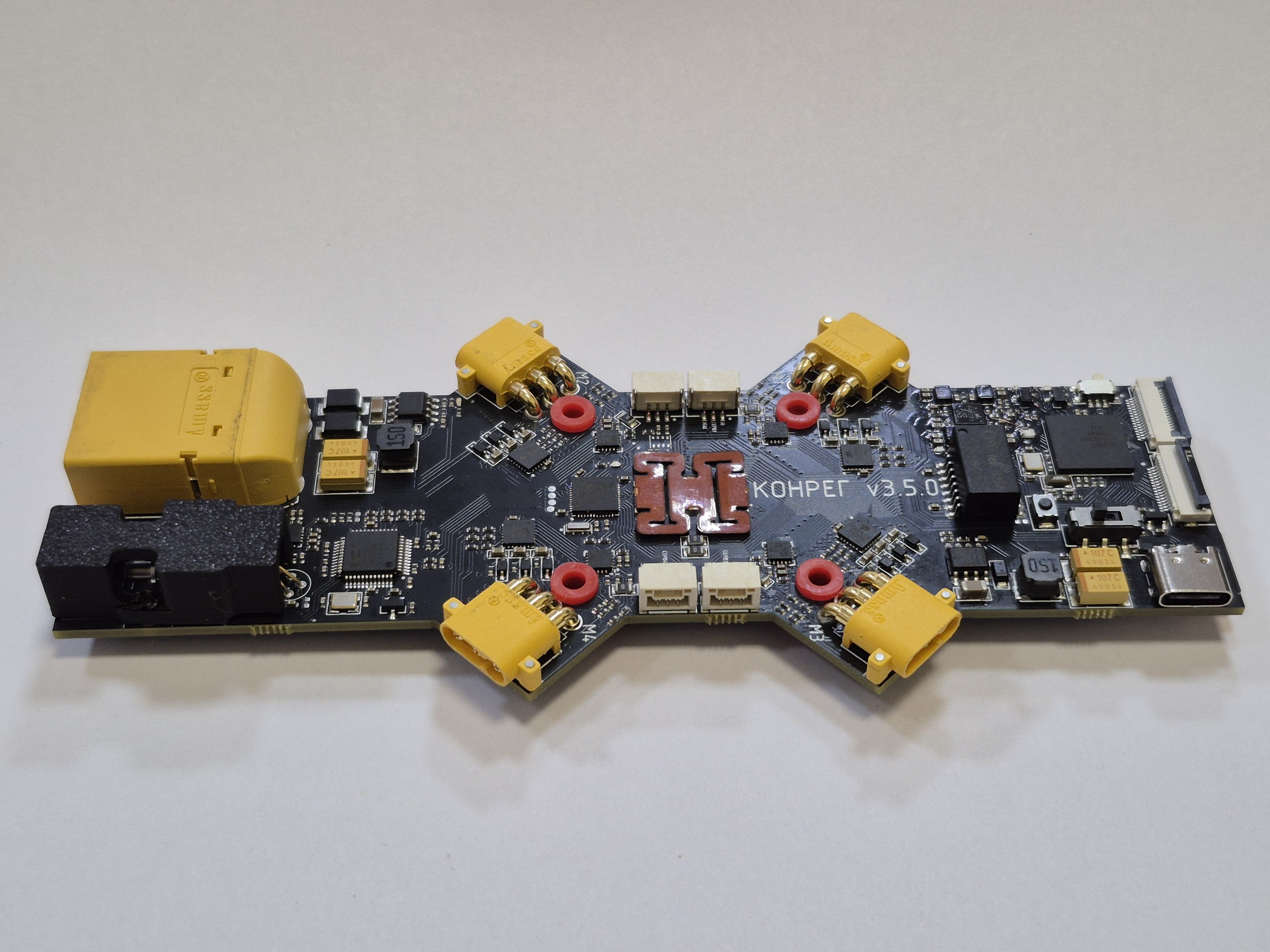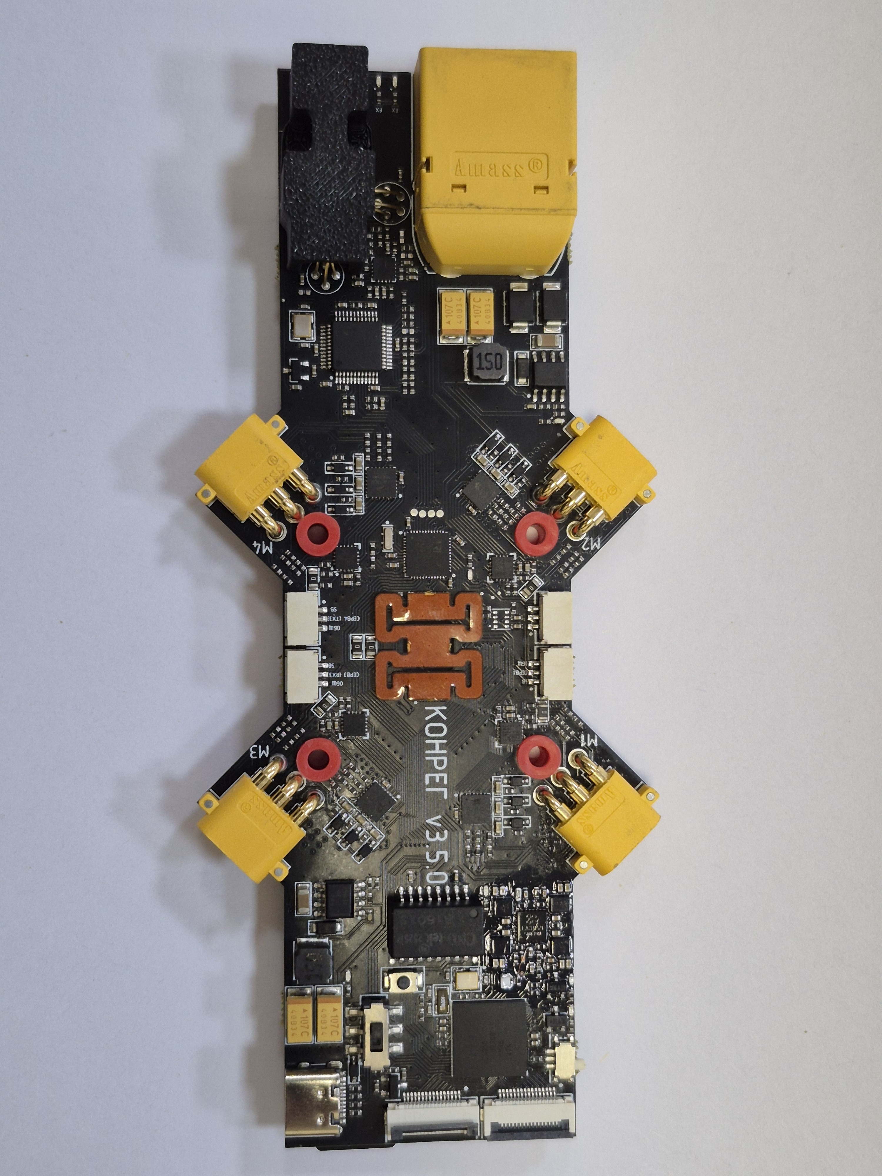 Конрег (КОНтроллер-РЕГулятор) – это универсальная плата, разработанная для сокращения времени и трудозатрат на сборку БПЛА. Модульная конфигурация на разъёмах. Конрег задуман как основа для создания лёгких FPV-квадрокоптеров с диаметром пропеллеров до 13 дюймов.